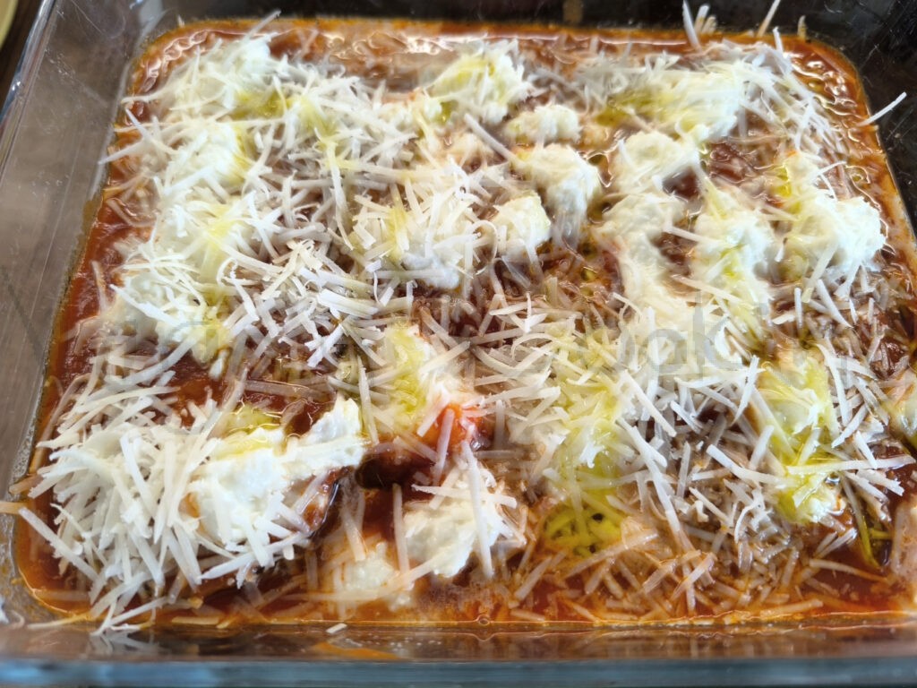 pridám omáčku, baklažány, zase omáčku a na vrch syry