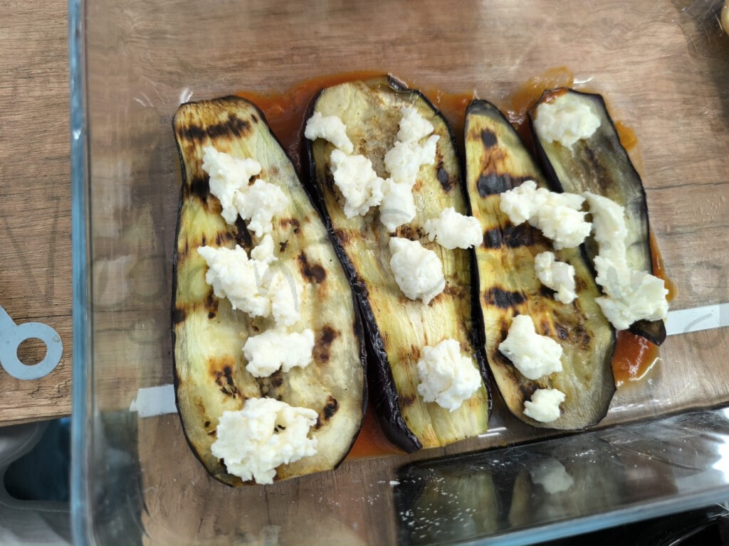 na to poukladám vrstvu baklažánov mozzarellu a parmezán