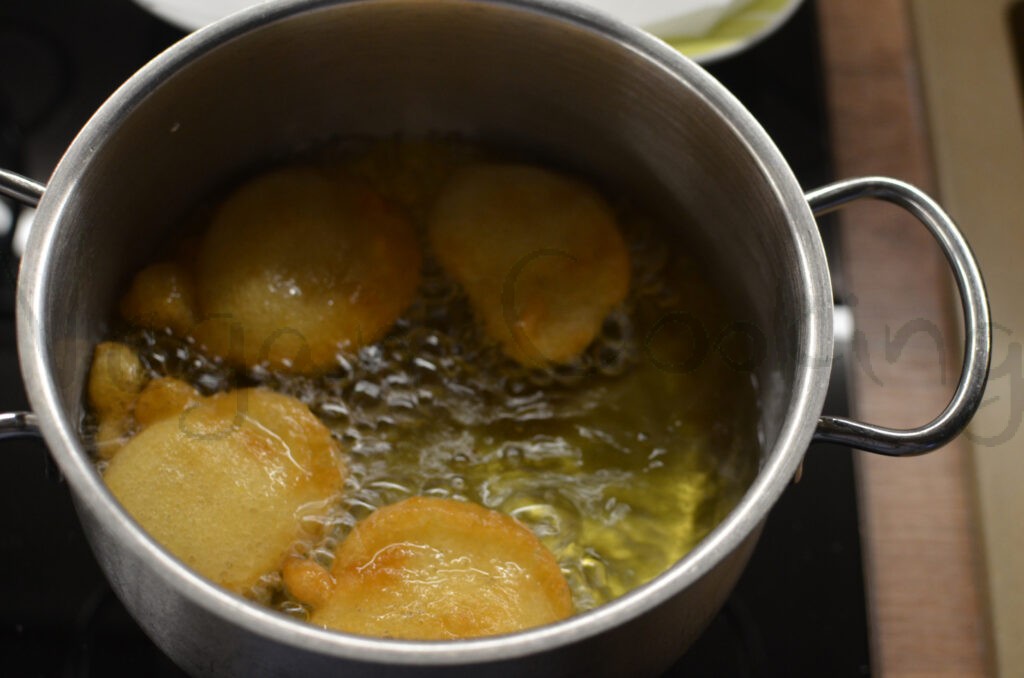lyžicou vkladám cesto do rozpáleného oleja a nechám osmažiť z oboch strán