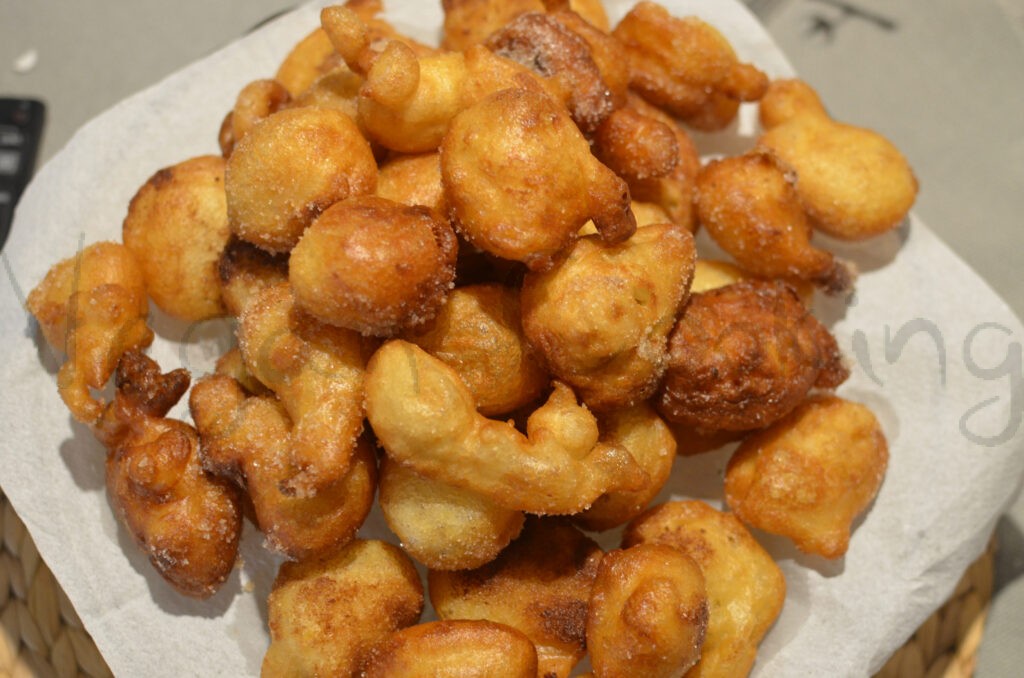 po usmažení ich vyberiem na papierové utierky a následne obalím v škoricovom a druhú pólku vo vanilkovom cukre