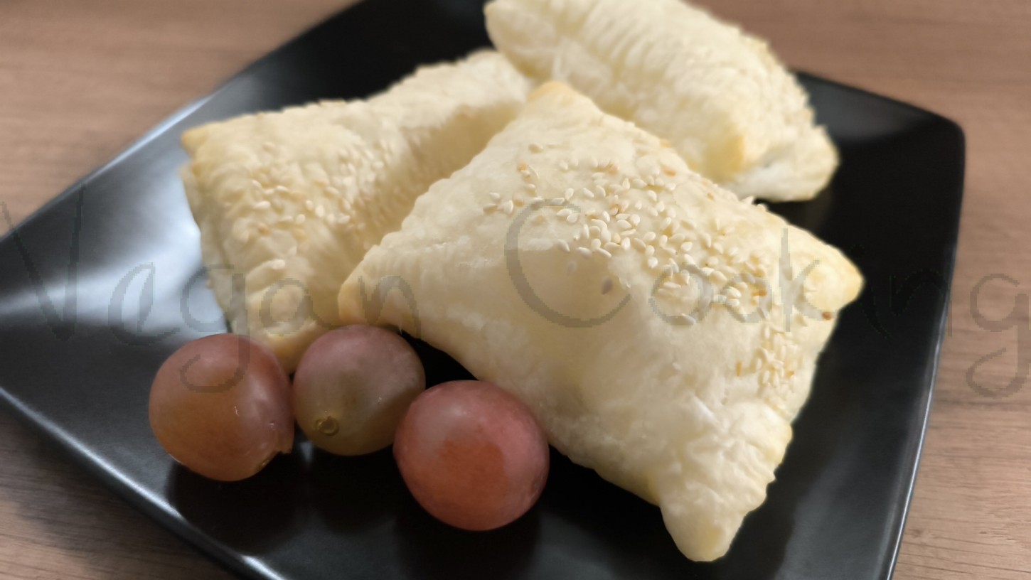 lístkové cesto som narezal na 8 častí pridal nastrúhané syry a štipku tymiánu